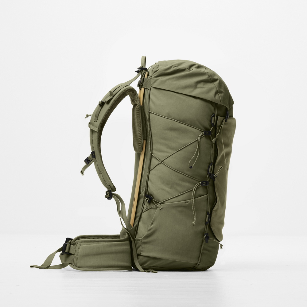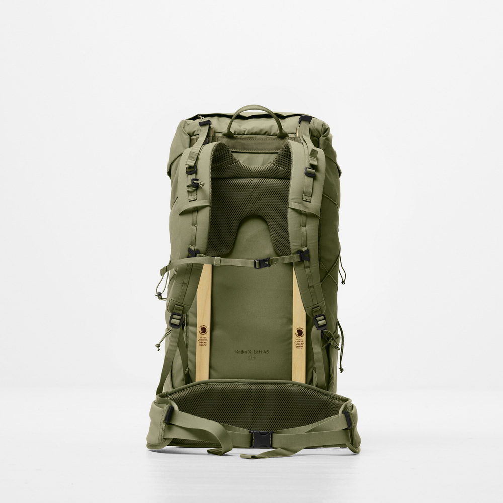 De Kajka X-Lätt heeft een hoofdvak van 45 liter - voldoende ruimte voor meerdaagse avonturen zonder onnodige ballast. Het ondersteunende houten frame van duurzaam berkenhout zorgt voor een comfortabele en evenwichtige lastenverdeling tijdens meerdaagse tochten, terwijl het modulaire ontwerp het gewicht tot een minimum beperkt zonder in te boeten aan functionaliteit. De Kajka X-Lätt is uitgebreid getest in de natuur en het geavanceerde rugsysteem kan eenvoudig worden aangepast aan verschillende ruglengtes, waardoor het gewicht gelijkmatig wordt verdeeld voor langdurig comfort. Ergonomisch gevormde schouderbanden en een anatomisch gebogen heupriem verfijnen de pasvorm verder en zorgen voor een veilige en comfortabele draagervaring, zelfs tijdens lange dagen in de buitenlucht.