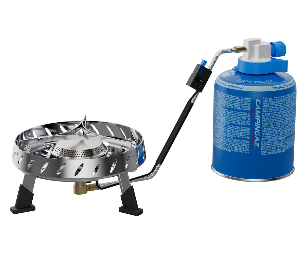 De basis van de gepatenteerde Easy Clic Connect technologie is het nieuwe 2-staps aansluitsysteem, waarmee alle modellen zijn uitgerust. Dit mechanisme zorgt ervoor dat de brander alleen kan worden gebruikt wanneer deze volledig en correct op de gascartouche is aangesloten. Duw het gascartouche eenvoudig in het aansluitpunt van het kooktoestel totdat je een klik hoort en draai vervolgens de hendel om deze vast te zetten. Duidelijke universele markeringen geven visuele bevestiging dat de brander correct is vergrendeld en klaar voor gebruik. Pas nadat de brander stevig is bevestigd, kan de gastoevoer worden ingeschakeld. Deze innovatie biedt extra gemoedsrust en bevestigt waarom Campingaz een van de meest betrouwbare en toegankelijke merken is voor buiten koken.