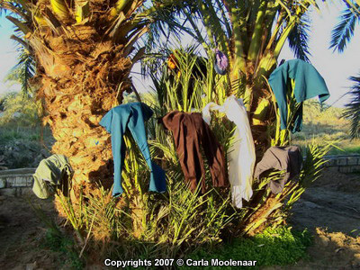 werkmanskleding in palmentuin van Bahariya oase