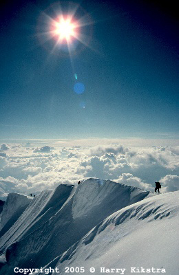 Topgraat van Denali (Mt McKinley), vanaf de top, 22 juni 2003