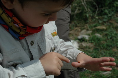 Elke tocht is een ontdekkingsreis: hier een ontmoeting met een lieveheersbeestje.
